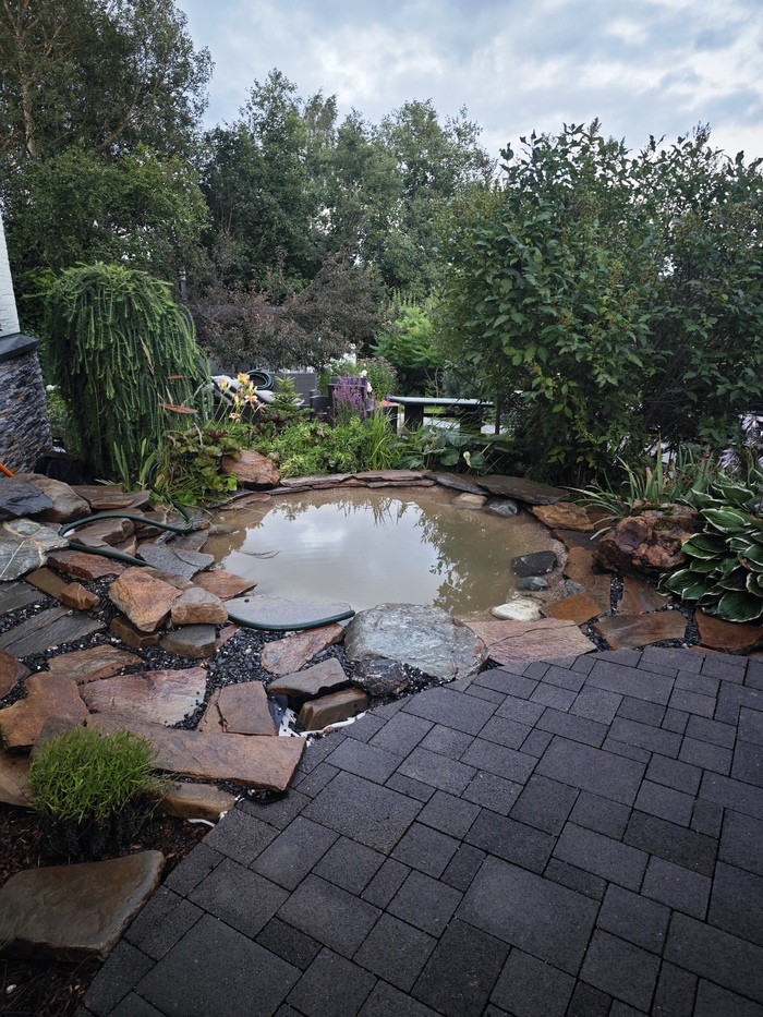 Сегодня закончили работу с камнем. За два дня мы с мужем перетаскали около 300кг камня. Как итог полностью выложены берега, сформирован ручей. Завтра будем налаживать оборудование- насос, очистительные фильтры, подсветку. Потом будет этап высадки растений в специально сформированные для этого карманы. Если интересно, обязательно покажу конечный результат.