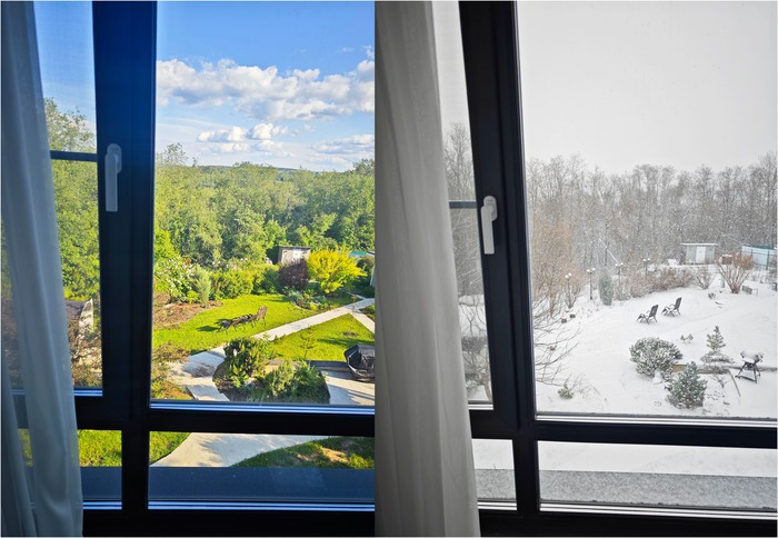 Кстати на фото видно, сколько деревьев упало после снегопада в мае. От этого плюс- у нас открылся вид, но минус тоже имеется- стало более ветрено.