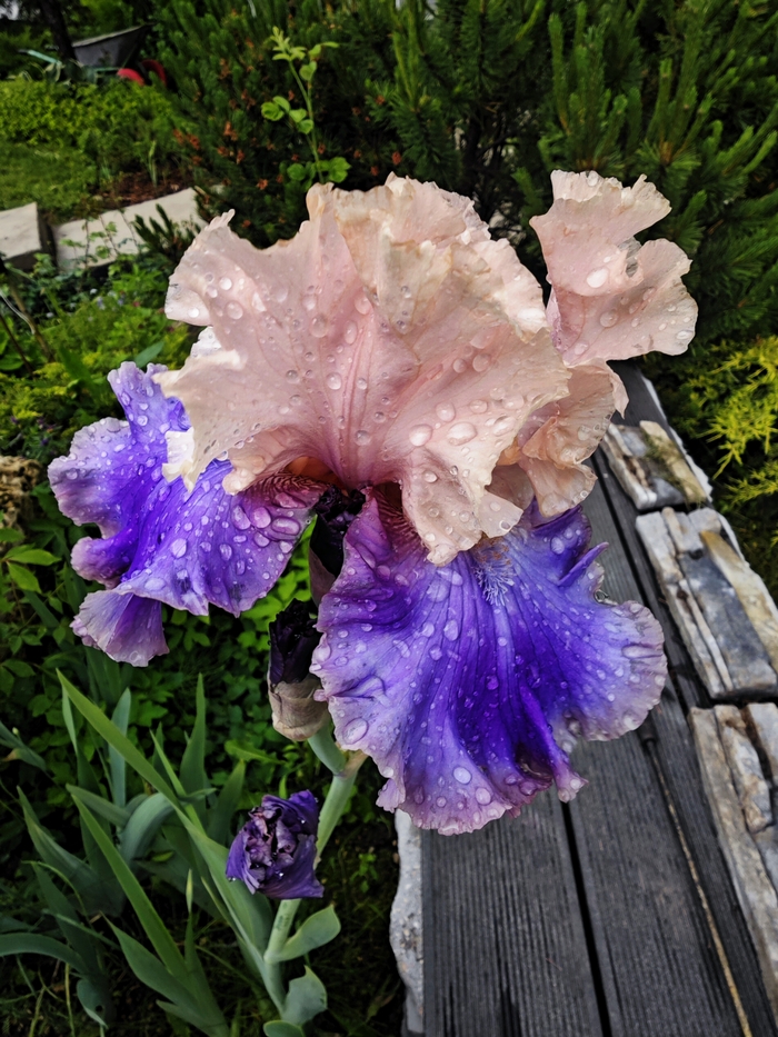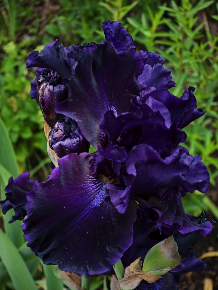 Black Tie Affair при раскрытии почти черный. Потом уходит в глубоко синий с оттенком фиолетового. От дождя цветоносы падают. Приходиться ставить поддержку.