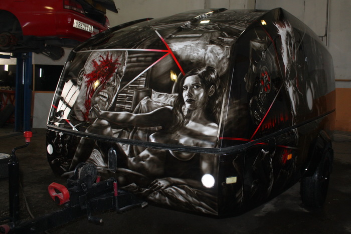 Прицеп в теме "Sin City"для тюменского любителя мотоциклов(много фото)