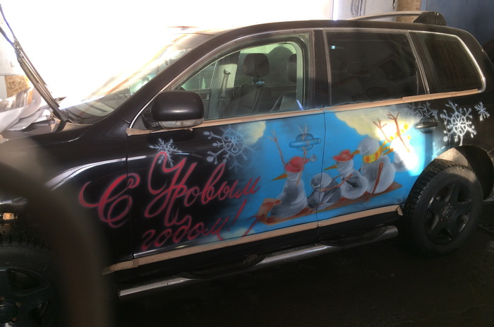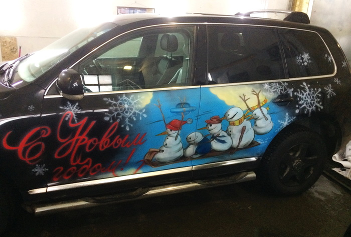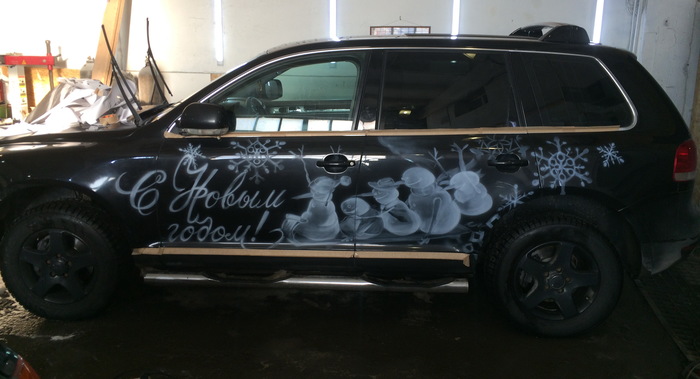 Вот такое праздничное настроение подарили владельцу черного,скучного Туарега)