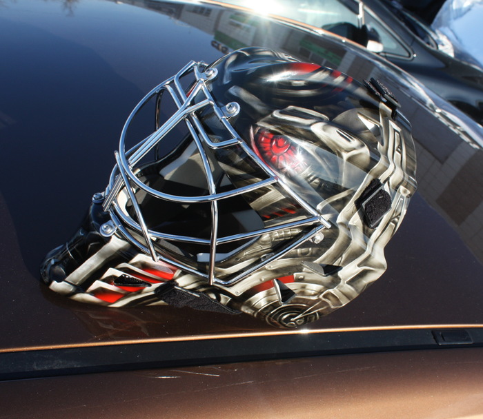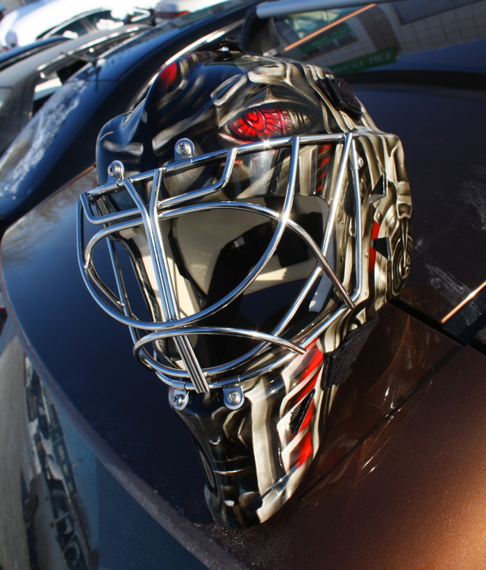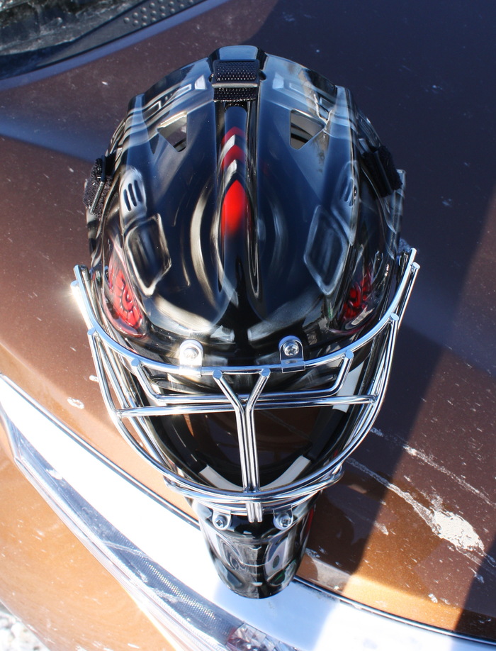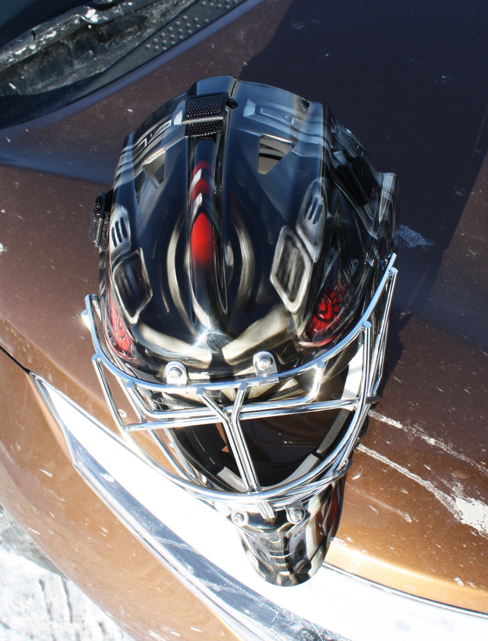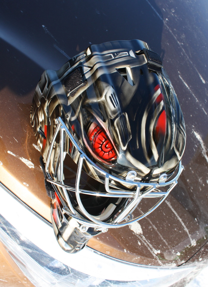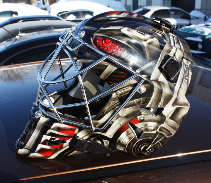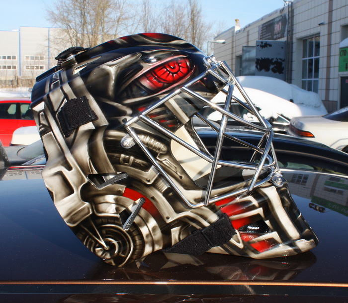 Сезон в КХЛ уже начался, к его старту успел выполнить пару шлемов для голкиперов.