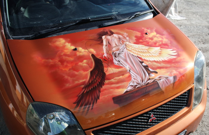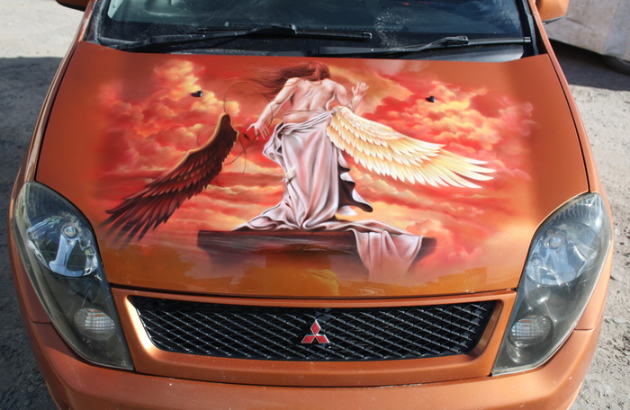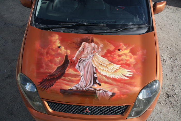 Ангел сбрасывает крылья, капот на Mitsubishi Dingo.