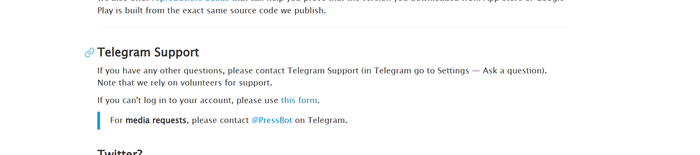 Поддержка у Telegram - это волонтёры. Я уже обращался к ним по другому вопросу пару месяцев назад - ответа нет до сих пор.