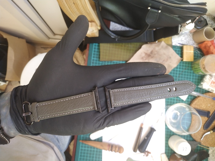 Так же колеровка краски в тон это отдельная история. Нужно было достичь такого цвета как кожа, поэтому торцы ремешка получились в цвет кожи и идеально гладкие.