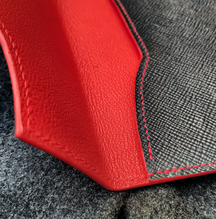 Но кому не понятен принцип, то на кож картон наклеил подиумы сверху обтянул кожей, обрезал. Наклеил подклад, обрезал.