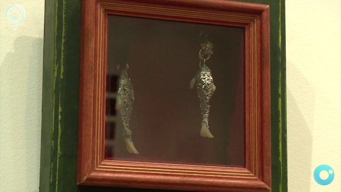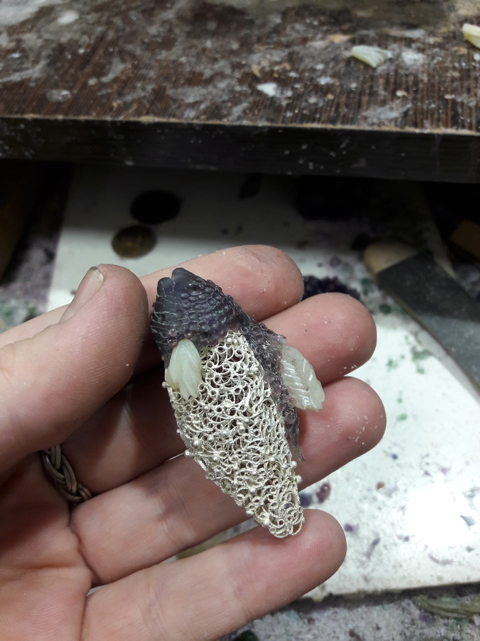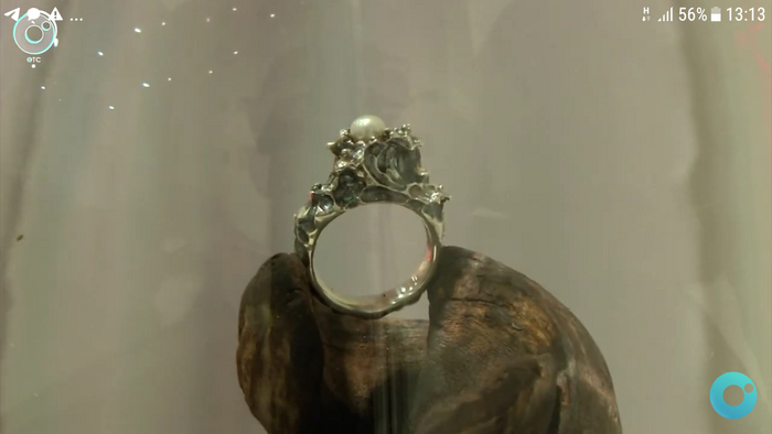 Перстень "Бурные воды" и "Рыбки" моносерьга-трансформер и кулон. За кадром ещё несколько украшений. После выставки обещали хороших фотографий отсыпать))