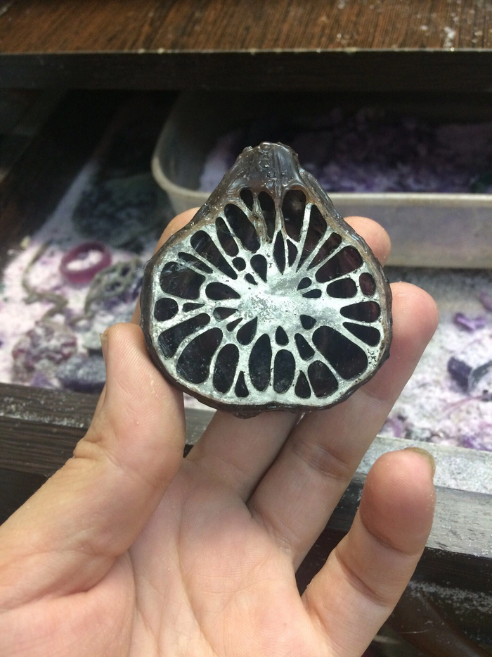 12 solyarisart Первые попытки работы с воском 2 года назад Не пошли в литьё, вышли очень тяжеловесными для украшений. Инжир, апельсин и авокадо. Показать полностью 5 [моё] Ювелирное дело Моделизм Воск Длиннопост Ещё 0