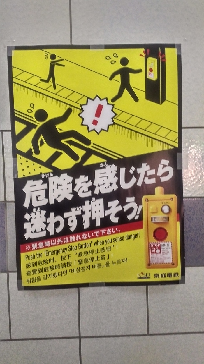 Если в друг видите какую-то опасность или же человек упал на рельсы, нужно нажать эту кнопку что бы машинист отреагировал на ЧП и не случилось никакой беды.