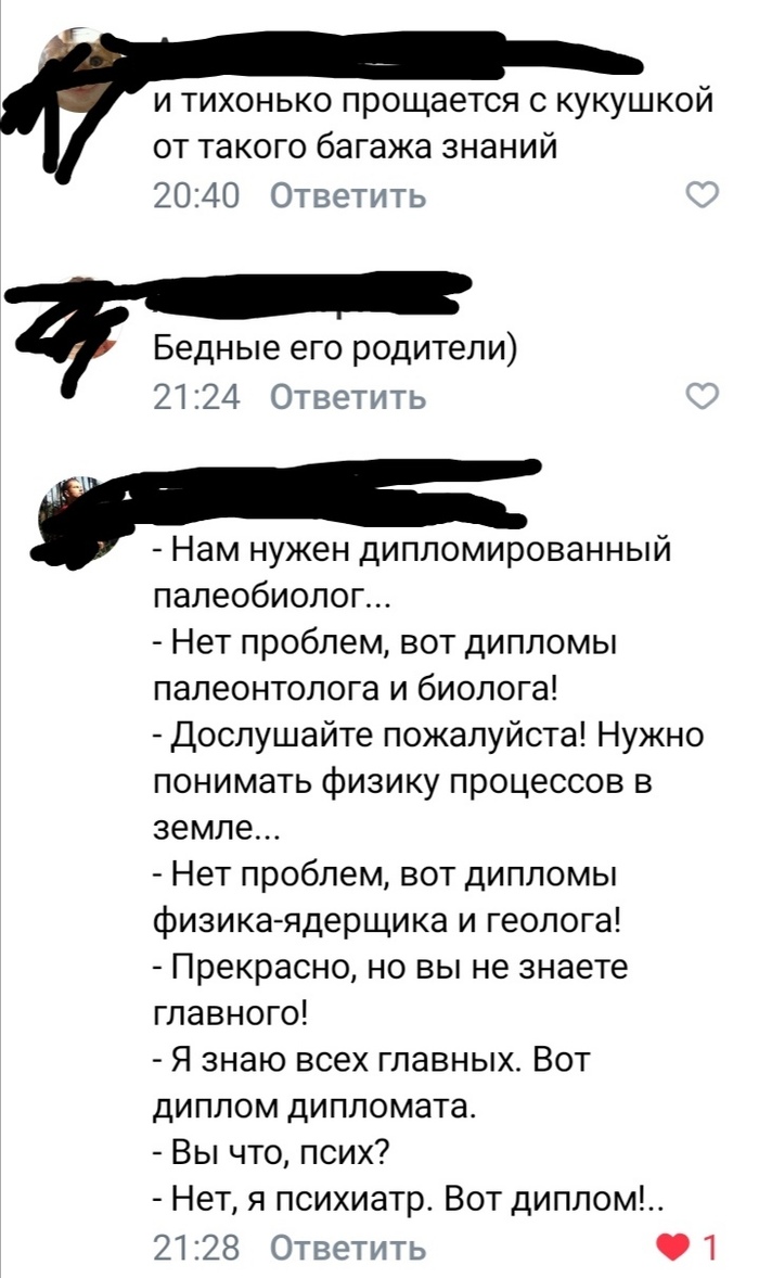 Минут 10 тишины. Ну как тишины... Слышу, как отец что-то рассказывает сыновьям. После этого опять весёлый шум и детские крики "Служу советскому союзу!".