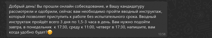 Далее он мне расписал условия работы и другую чепуху. Это можно пропустить, но для полноты картины оставлю:
