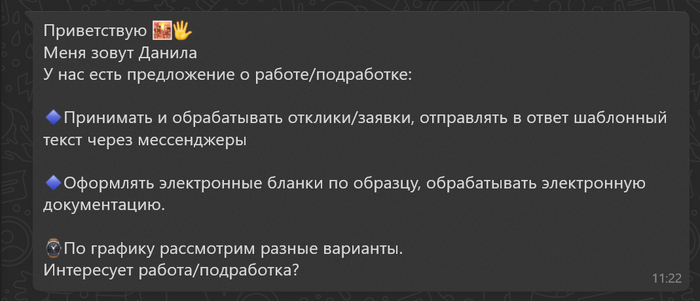 Т. к. я за свою пока еще короткую жизнь уже имею опыт и представляю, что такое пролетарствовать на малооплачиваемых работах, вакансии которых вы можете всегда найти у себя в городе, т. к. там постоянная текучка, — я решил попробовать откликнуться на это предложение. Уж лучше я буду сидеть дома и работать за ПК, чем за те же деньги гробить здоровье, работая на складе и задыхаясь от пыли (бронхиальная астма, привет).