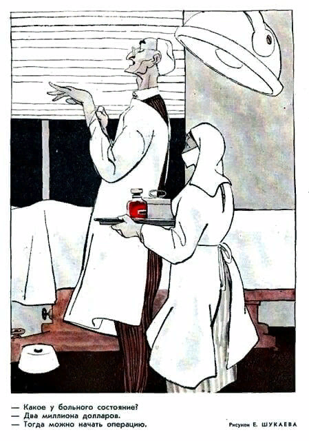 12 sovetskiislovar Подборка карикатур американских карикатуристов о медицине "правильного" капитализма 5 лет назад В связи актуальностью медицинской темы продолжаем ее глазами американских карикатуристов. Источник: Л.Л.Борисоглебский «Хронический кризис здравоохранения в США»: Показать полностью 25 Юмор Сатира Карикатура Медицина Платная медицина Длиннопост Ещё 0