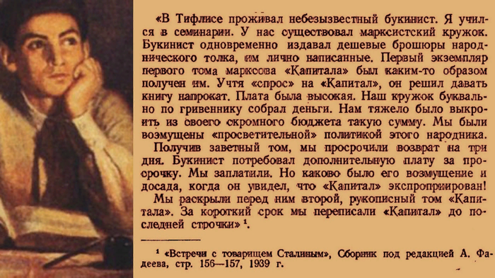 "Все произведения т. Сталина — это бессмертный вклад в марксизм. Его работы «Об основах ленинизма», «Краткий курс истории ВКП (б)», а также его последний великий труд «Экономические проблемы социализма в СССР» — это энциклопедия марксизма-ленинизма, обобщение опыта мирового коммунистического движения за последние сто лет".