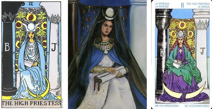 Интересно также, что папесса Иоанна изображена на одной из карт таро «Верховная жрица». Женщина запечатлена с папской тиарой на голове, в рясе и с крестом на груди. Помимо прочего, ее кресло украшают плоды граната, обозначающие плодородие, изобилие, любовь и возрождение.