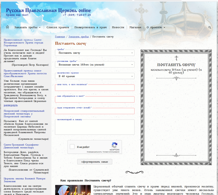 Удобная функция, поставить свечу за упокой в 40 храмах теперь доступна.