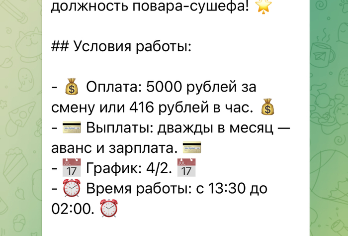 Наш чемпион, повар за 2100 за семи/восьмичасовую смену, просто можно ложиться и Роскомнадзор