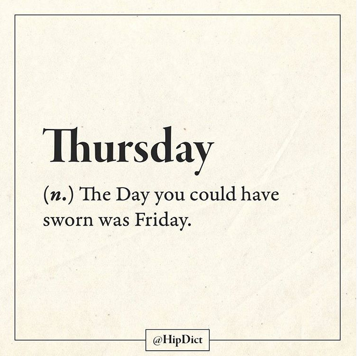 ЧЕТВЕРГ - день, когда вы были готовы поклясться, что уже пятница.