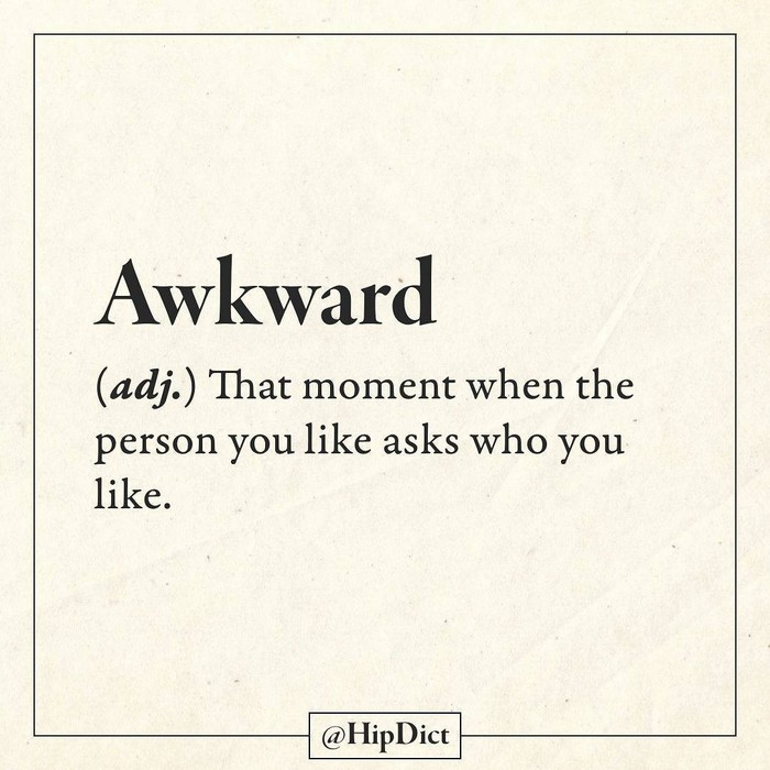 НЕЛОВКОСТЬ — момент, когда человек, который вам нравится, спрашивает вас, кто вам нравится.