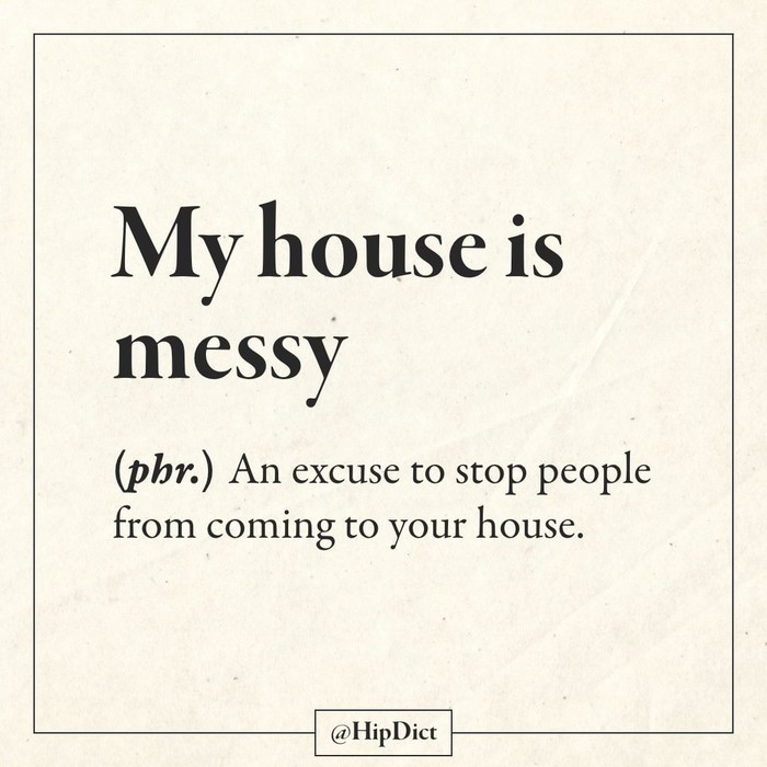 У МЕНЯ ДОМА НЕ ПРИБРАНО — отмазка, используемая, чтобы люди не приходили к вам в гости.