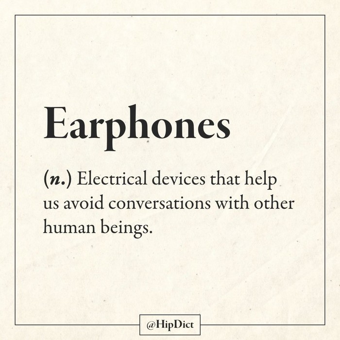 НАУШНИКИ — электронное устройство, помогающее нам избегать разговоров с другими людьми.