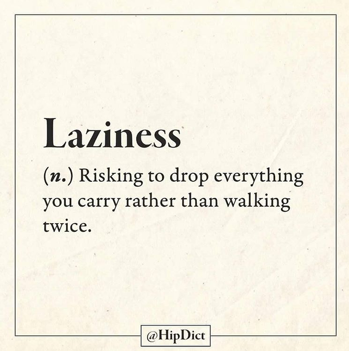 ЛЕНЬ - когда рискуешь уронить все, что у тебя в руках, лишь бы не ходить два раза.