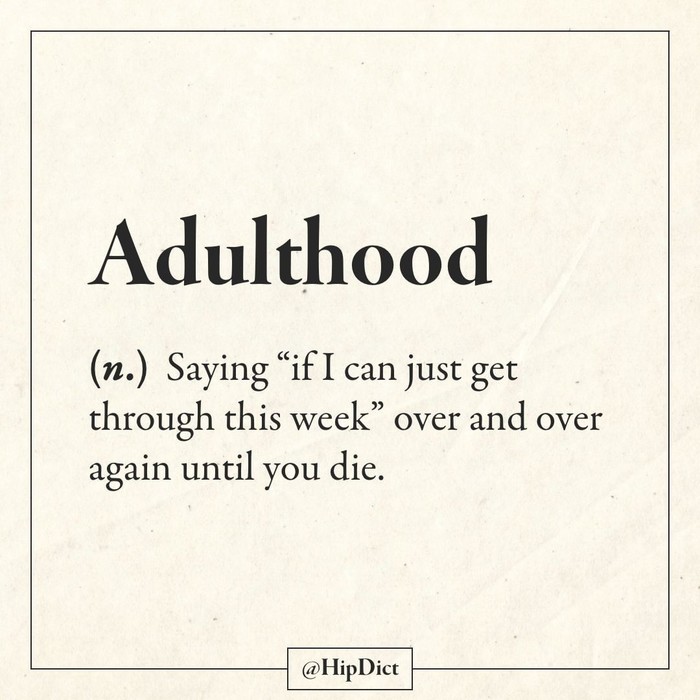 ВЗРОСЛАЯ ЖИЗНЬ — когда ты твердишь себе "Лишь бы дожить до выходных"... и так до самой смерти.