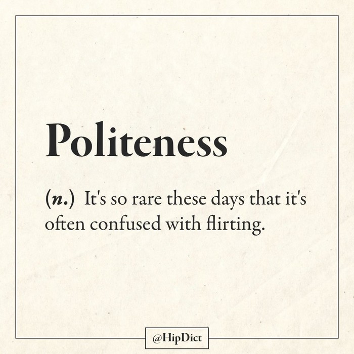 ВЕЖЛИВОСТЬ — настолько редкая вещь в наше время, что ее часто путают с заигрыванием.