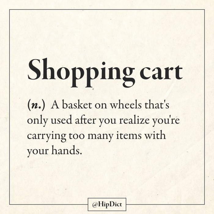ТЕЛЕЖКА ДЛЯ ПОКУПОК —корзина на колесах, которую вы берете только тогда, когда понимаете, что уже не можете удержать в руках все, что набрали.