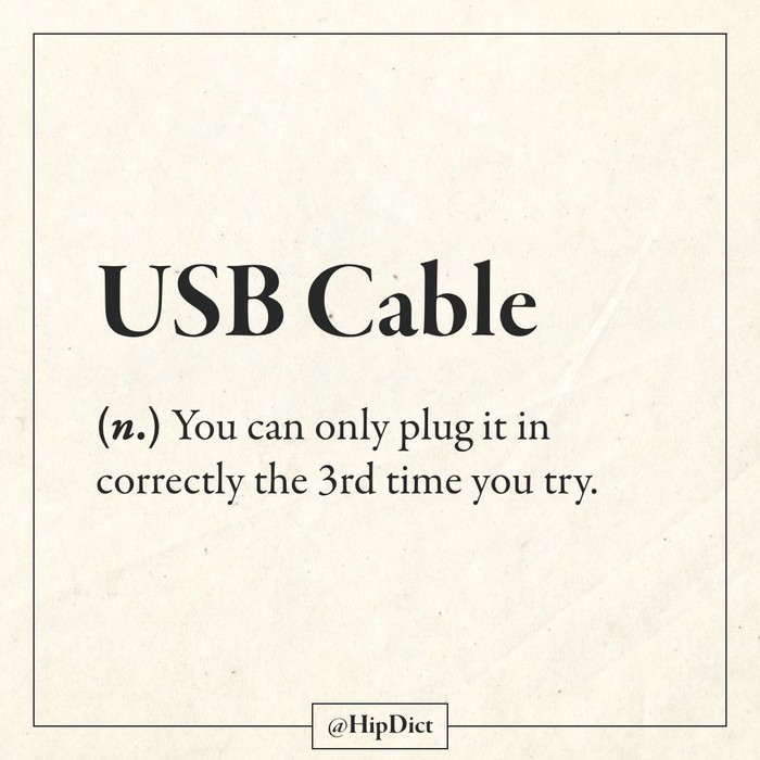 USB кабель — штука, которую получается правильно воткнуть только с третьей попытки.