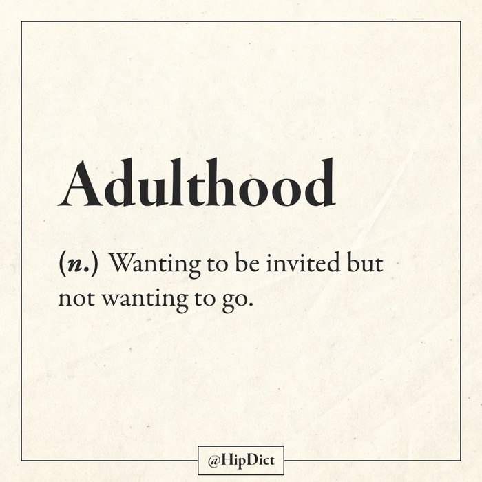 ВЗРОСЛАЯ ЖИЗНЬ — когда хочешь, чтобы тебя пригласили, но не хочешь идти.