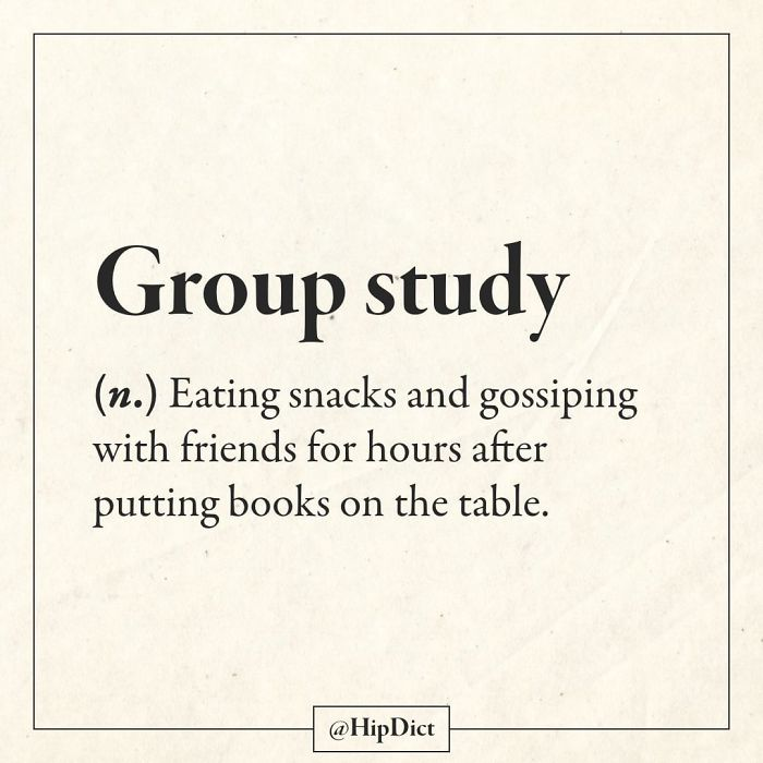 ГРУППОВОЙ РАЗБОР ТЕМЫ - несколько часов поедания вкусняшек и сплетен с друзьями после того, как выложили учебники на стол.