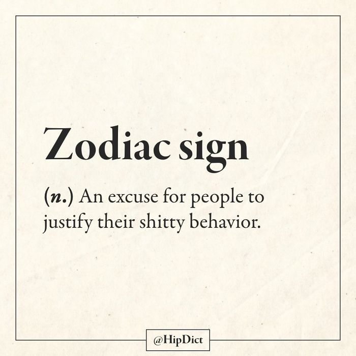 ЗНАК ЗОДИАКА - отмазка, используемая людьми для оправдания своего паршивого поведения.