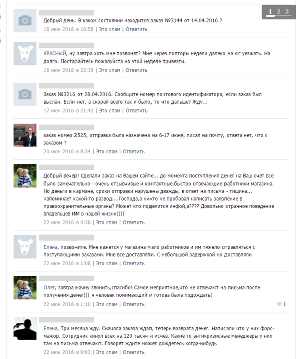 Уже в процессе выклянчивания денег я наткнулась на группу вк, где были комментарии с просьбой вернуть деньги или выслать заказ, после того, как мне вернули деньги, в обсуждении еще появлялись комментарии о заказах, сейчас же люди пишут только о том, что они не отвечают и не возвращают денег.