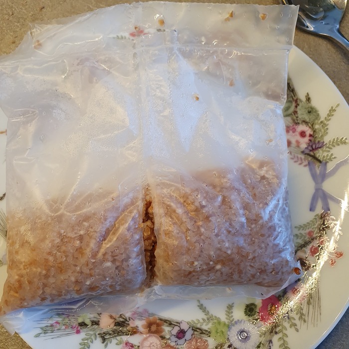 Сегодня у меня была крупа неизвестного мне производителя. На фото выше. Ну, что ж, почему бы и нет? Бросила пакет в кипящую воду и стала ждать. Минут через 7 решила пакетик перевернуть(ну есть у меня такая привычка). И что же я увидела? Крупа плавает...и не в пакете, как должно быть.