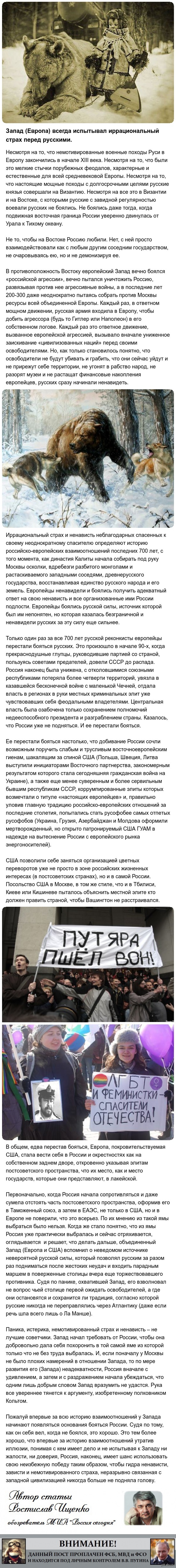 42 spiritofwonder Когда русских не боялись 10 лет назад Оригинал тут http://cont.ws/post/86643/ Показать полностью 1 Россия Украина Запад Политика Ростислав Ищенко Аналитика История Длиннопост