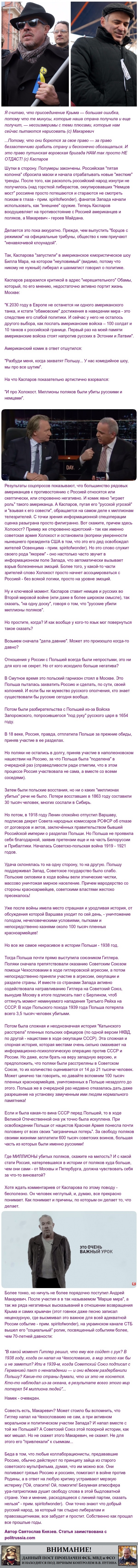 541 spiritofwonder Слабоумие и неполживость 10 лет назад И даже после такого либерасты считают себя настоящими патриотами, а всех остальных продажными кремлеботами. Такие дела. Показать полностью 1 Россия США Политика Либералы Гарри Каспаров Андрей Макаревич Украина Длиннопост