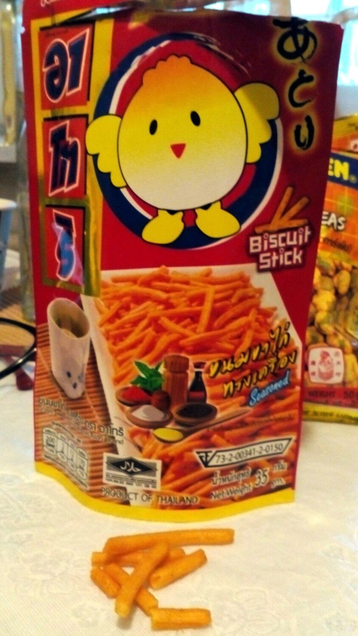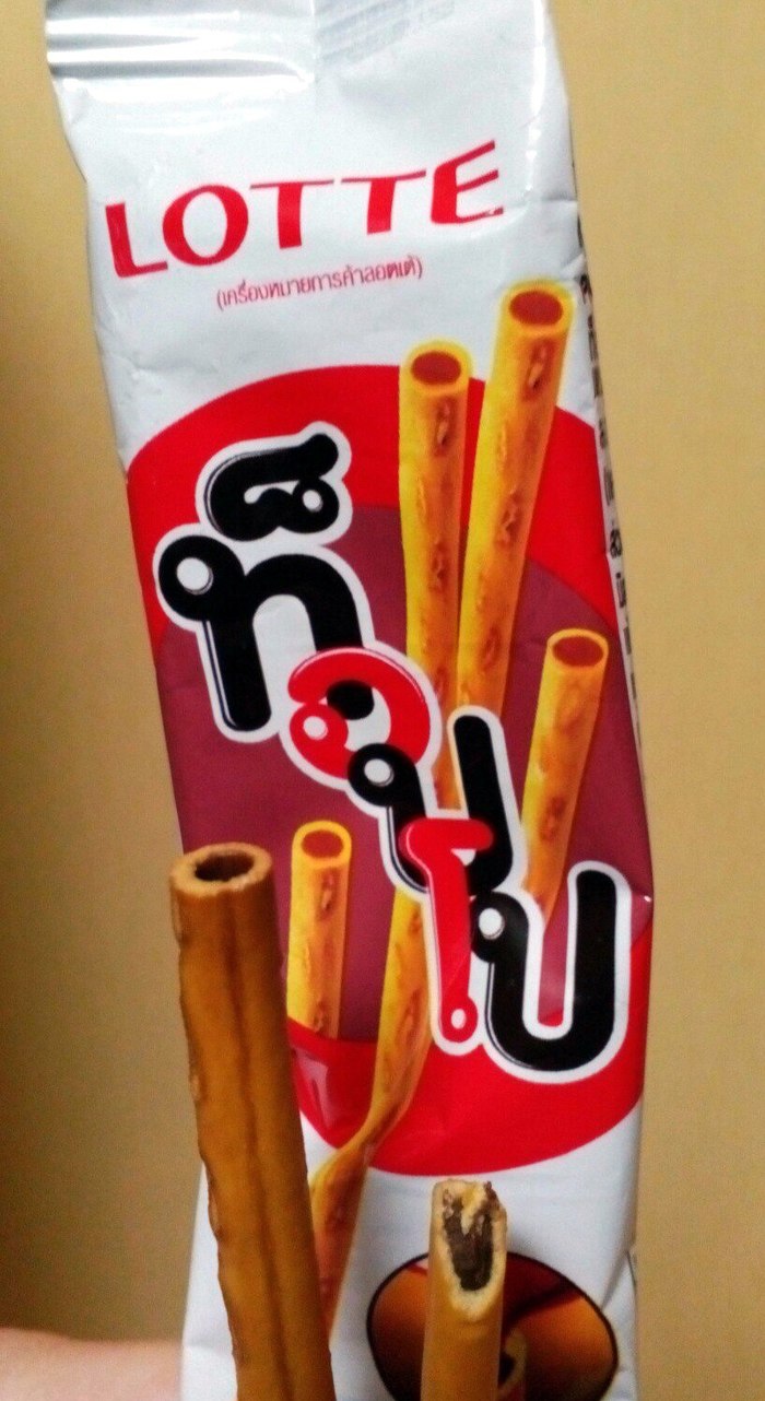 Единственное, что я пожалуй купил бы себе в тайском магазине (из продегустированного) это палочки LOTTE, по вкусу обычная соломка (только не соленая) с шоколадом внутри. Мне понравилось.