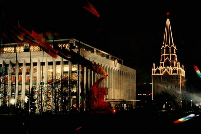 Государственный Кремлевский дворец (до 1992 года – Кремлевский дворец съездов) построен в 1961 году по проекту авторского коллектива под руководством архитектора Михаила Посохина, при поддержке Никиты Хрущева.