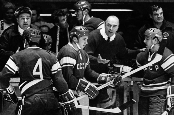 г. Гренобль. Тренеры хоккейной сборной СССР: Анатолий Тарасов и Аркадий Чернышев.