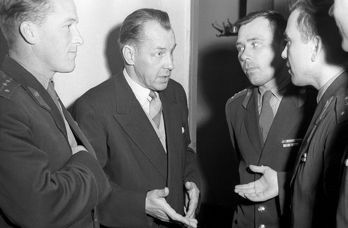 Евгений Федоров – главный ученый секретарь президиума АН СССР, (справа от Гагарина) Александр Несмеянов – президент АН СССР. (слева от Гагарина)