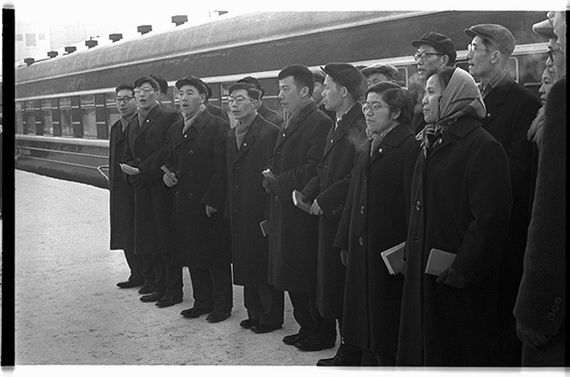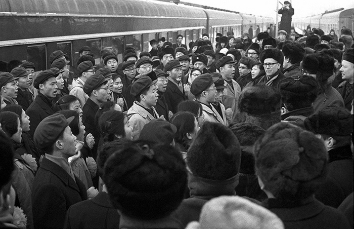 На перроне. Ярославский вокзал. Высылка китайских студентов из СССР. Советско-китайский конфликт. 25 января 1967 г.