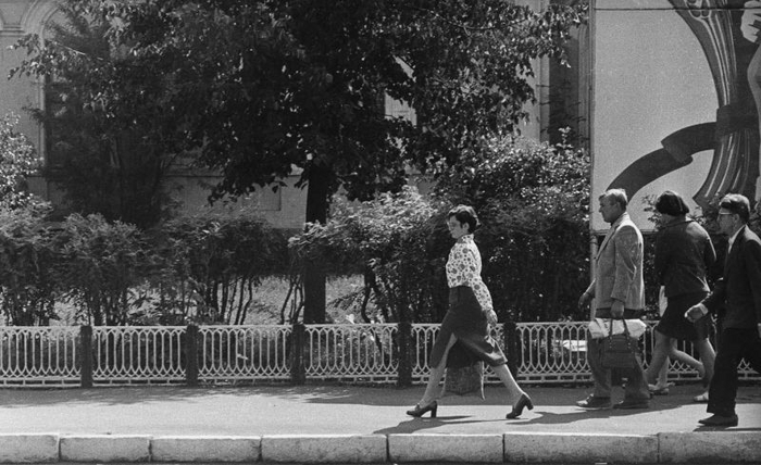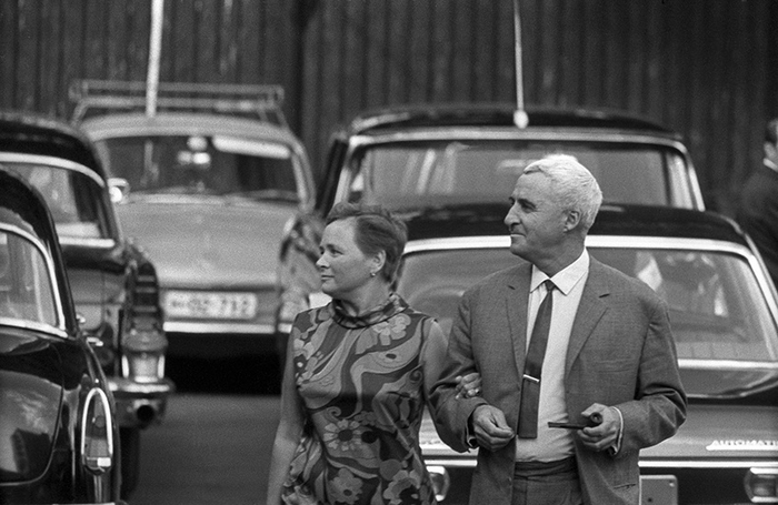 Средь городского шума. Константин Симонов с женой.1960-е.
