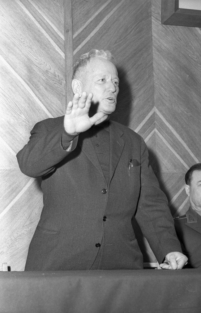 Среди членов Президиума: Климент Ворошилов (в первом ряду пятый справа), Вячеслав Молотов (четвертый справа), Анастас Микоян (третий справа), Георгий Жуков (во втором ряду четвертый справа), Леонид Брежнев (во втором ряду второй справа).