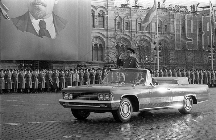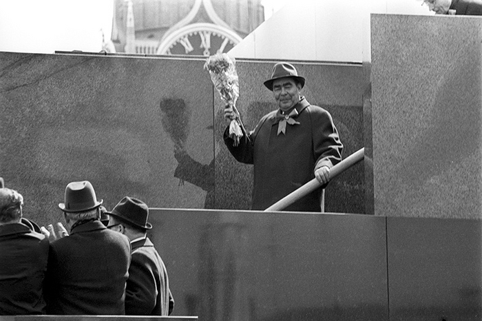 Генеральный Секретарь ЦК КПСС Леонид Ильич Брежнев на трибуне Мавзолея. 1970 г.