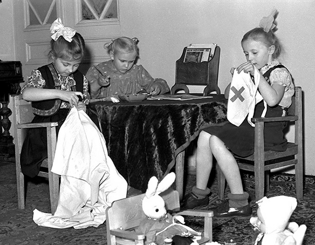 Дети в детском саду. Занятие по рукоделию. 1970-е.