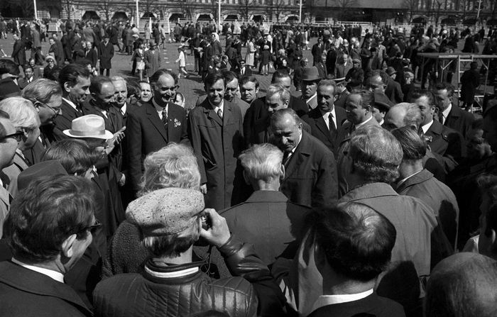 Виктор Васильевич Гришин общается с москвичами после первомайской демонстрации на Красной площади. 1972 г.