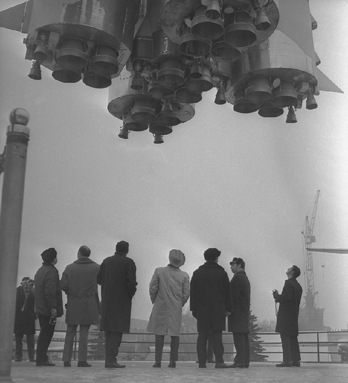 Члены делегации NASA осматривают ракету-носитель «Восток». 1974-1976 гг.