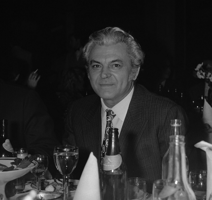 Председатель КГБ СССР Юрий Владимирович Андропов с бокалом шампанского в своем кабинете на Лубянке. Осень 1976 г.