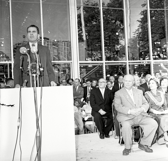 Открытие американской выставки в Москве. Выступает вице-президент США Ричард Никсон.